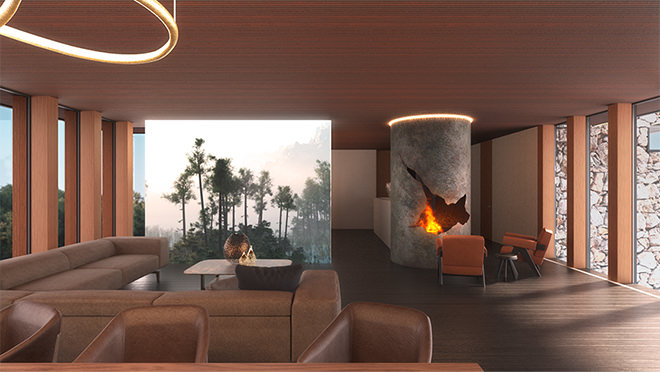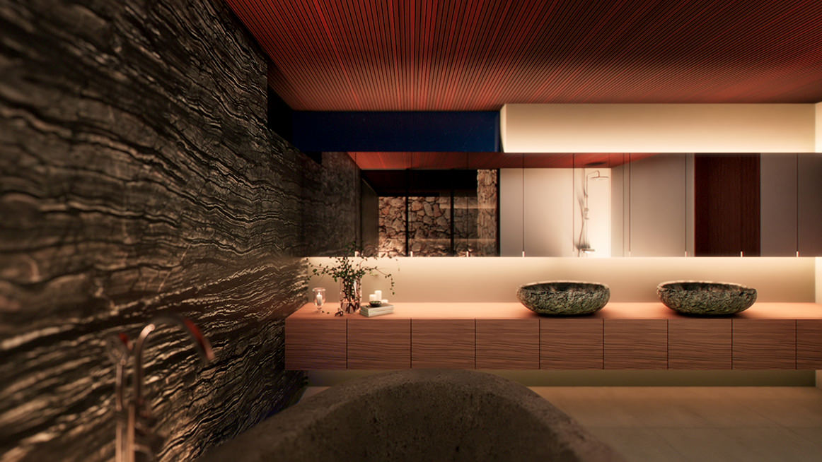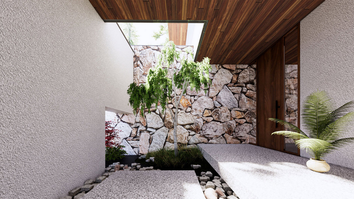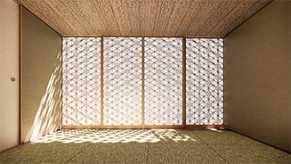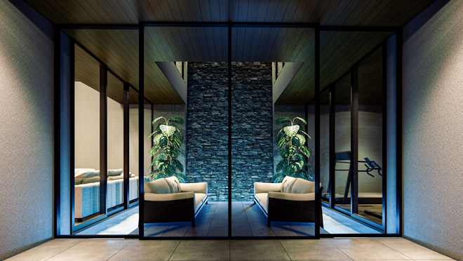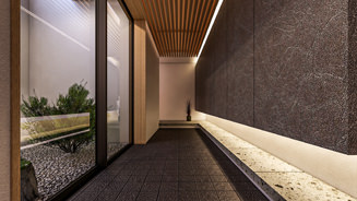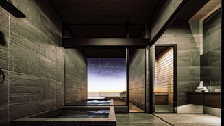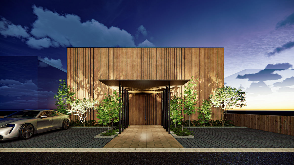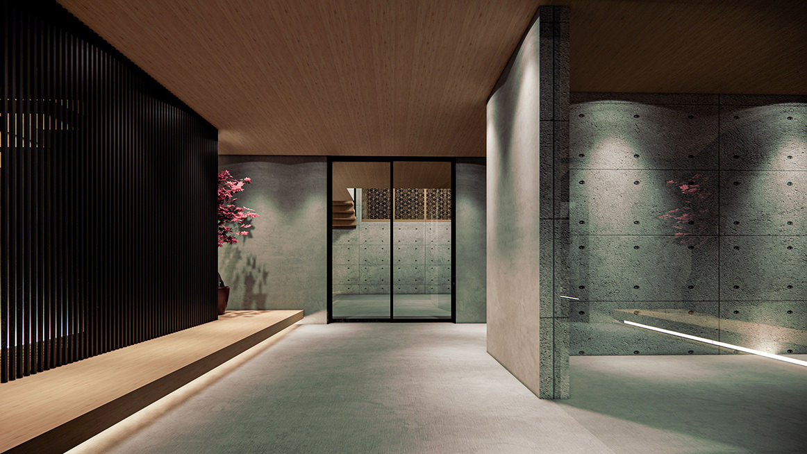 建物內外には繊細な草木を引き立てる巖壁を施し、景観と調和し、感性を優しく刺激する癒やしをデザイン。
