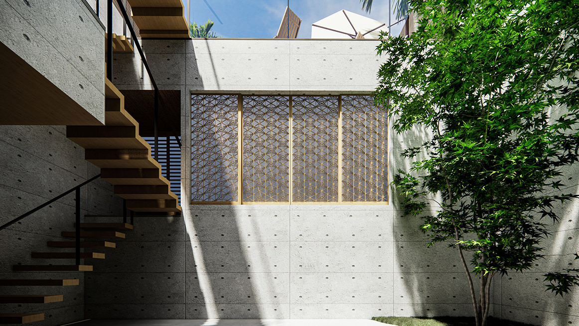 これぞ、まさに“外遮內開”。郊外?都市部どちらにも応えられるマルチな建築である。