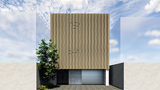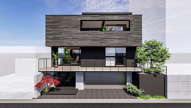 佇まいは、プライバシー性の高い外に閉じた3階建て。