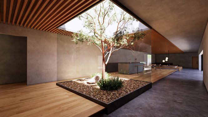 さらに、シンボルツリーのある中庭によって、すべての空間が緩やかにつながり、光と緑が行き渡る。