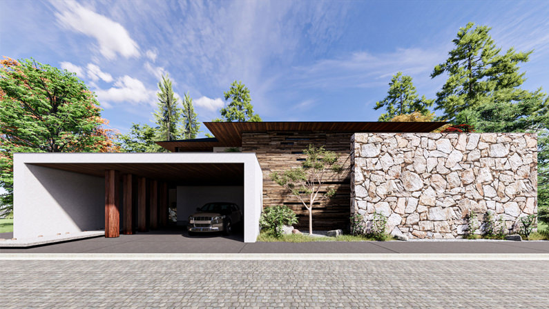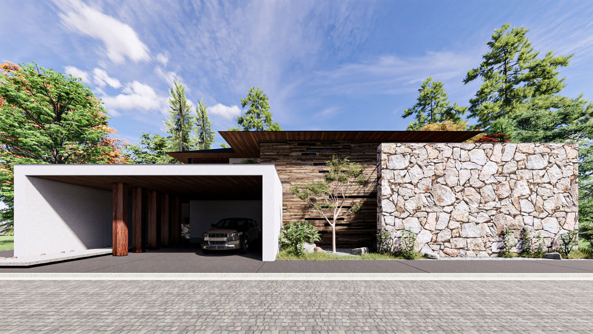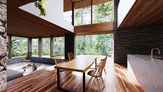 眺望を愉しめるガラス張りの2階リビングや內でもあり外でもあるアウトドアのリビング、そして、大膽なプランニングや自然素材の活用を通して、家でありながら、別荘のような癒しや刺激を味わえる。