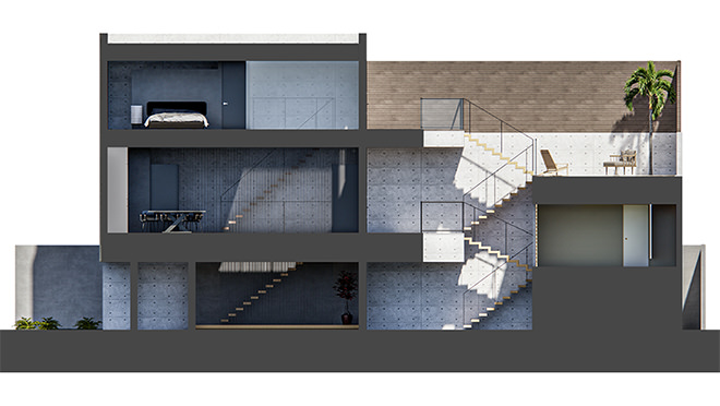 都市部の高低差がある敷地を、多層的な視點で魅力に変えるレジデンス。