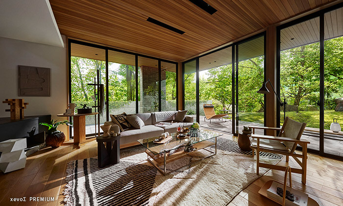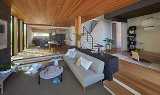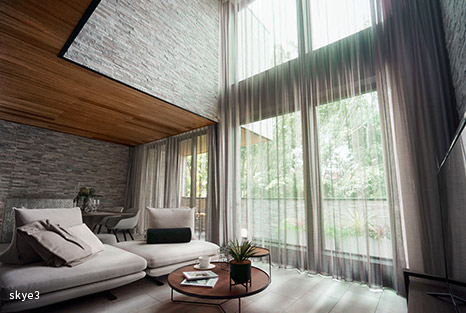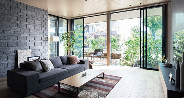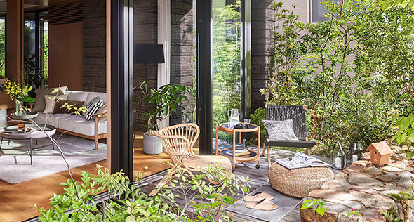 2m72cmの高い天井と、天井まで達(dá)するグランフルサッシなどの大開口により、たっぷりの陽光や心地よい風(fēng)を感じながら、四季折々の自然とのつながりを愉しむ事ができます。