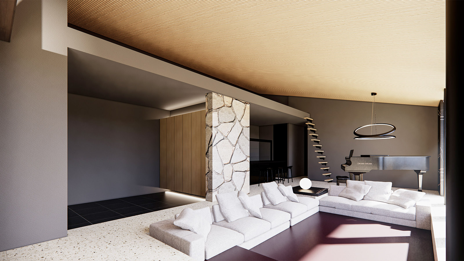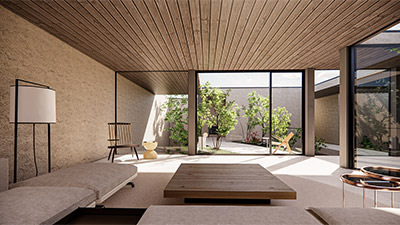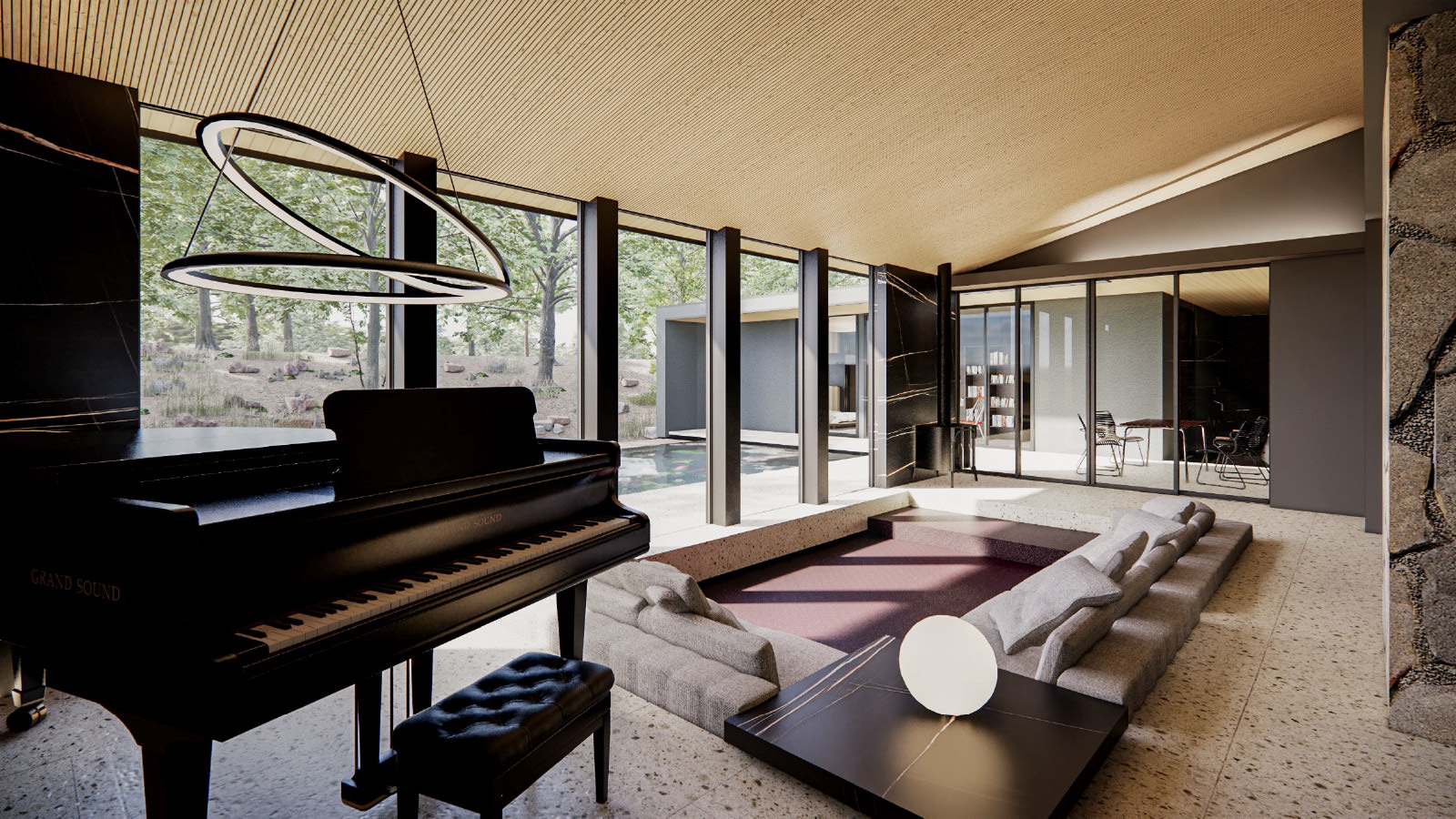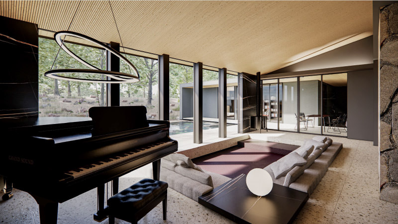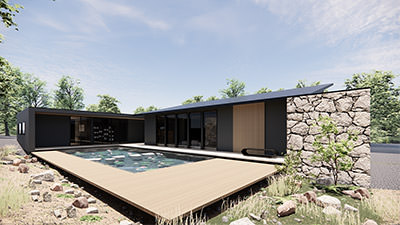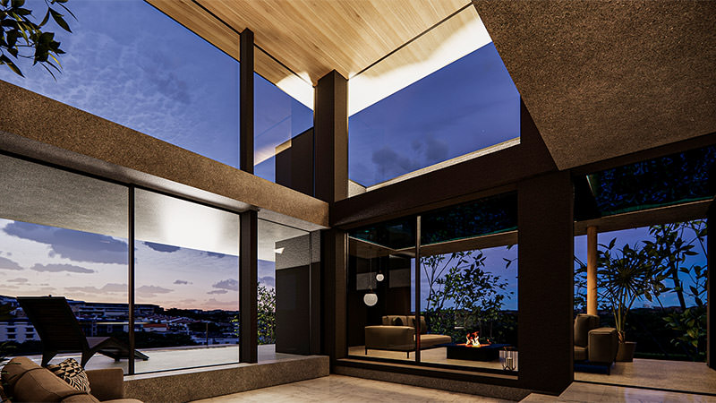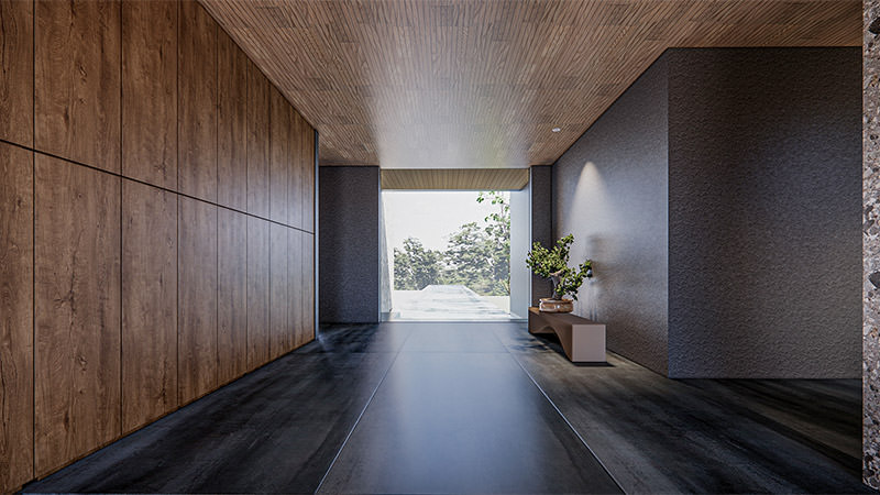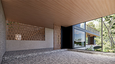 自然と建物が互いに引き立て合い、囲われる安心感の中に開放感が味わえるような暮らしを提案する。