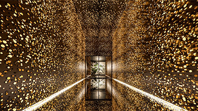 建物は上からいくつか孔をあけたようなシンプルなプラン構成とし、上部から1階まで光をおとしている。
