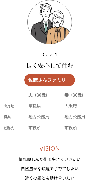職場結婚で、夫が生まれ育った街へ。この街が好きだから、ずっとここで生きていきたい。そう決めたから、結婚と同時に家を建てようと考えている。近くに住む親にも相談しよう。將來の子育ては親にも協力してもらい、一緒に楽しんでいきたい。