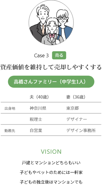 獨立後ずっと忙しかった仕事が、スタッフが育って落ち著いてきた。子どもが大きな犬を飼いたいと言うので、広めの一軒家を持ちたい。子どもが巣立ったらマンションに住むのもあり。