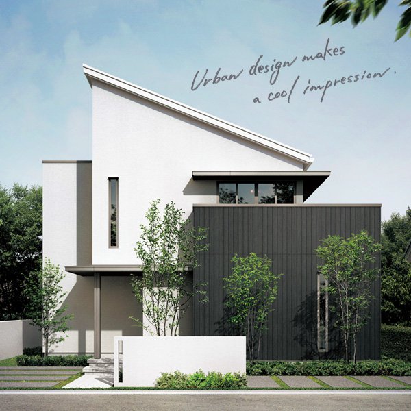 フラットな面で構成されたダイナミックなシルエットと、モノトーンでメリハリが利いた外壁の色彩。シンプルな美しさを追求した、端正なスタイルの外観は、街並みに溶け込みながらも個性が際立つアーバンデザインです。屋根や玄関ドア、サッシまでバランスを計算し盡くしコーディネートした統一感のある、シックな佇まいが魅力です。