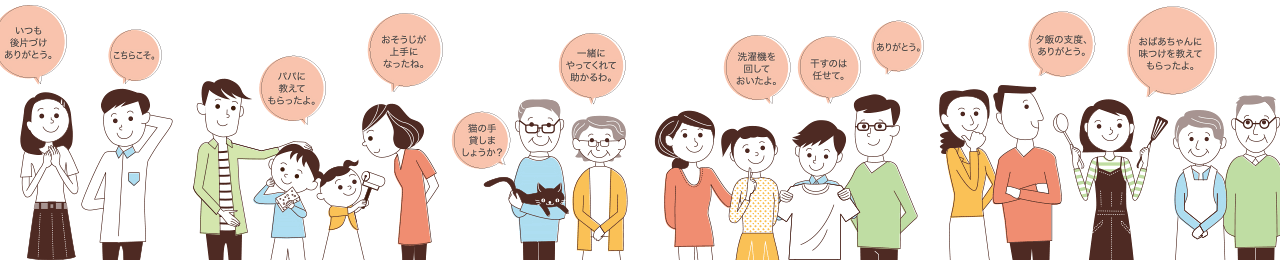 家族同士がより良い家事の方法を伝え合ったり、お互いへの感謝を言葉にしたりと、家事をシェアする中でコミュニケーションが生まれます。子どもにとっては、自分の苦手とする家事ができる人=親への尊敬の念が芽生えるかもしれません。