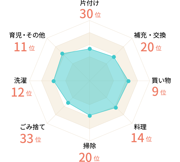 家事負擔者の満足度22位