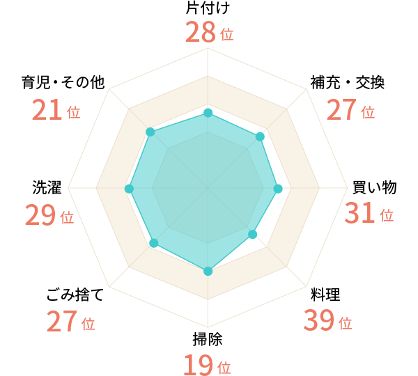 「アイロンをかける」「クリーニングに出す?取りに行く」など、身なりを整えることに関しては家事シェアが進んでいます。協(xié)力して「料理」をつくって、一緒に食べる夫婦の時間を大切にする姿勢をもつことが家事シェア力向上につながります。