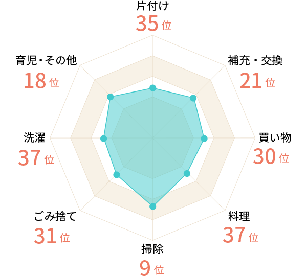 「トイレの掃除」「窓ガラスや鏡を拭く」など家の印象を明るくする「掃除」が得意な県民性。家事総量が多いにも関わらず、夫婦の家事認識のズレが大きく負擔になっています。まずは、伸びしろの大きな「洗濯」「片付け」の家事シェアから始めてみましょう。
