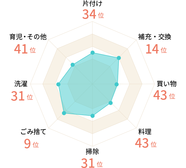 「ごみ捨て」「補充交換」など取り組みやすい家事シェアは進んでいるが、「買い物」「料理」「育児」など負擔の大きな家事はまだまだシェアが進んでいません。特定の家事を分擔しておしまいではなく、すべての家事に関わることが家事シェアのポイントです。
