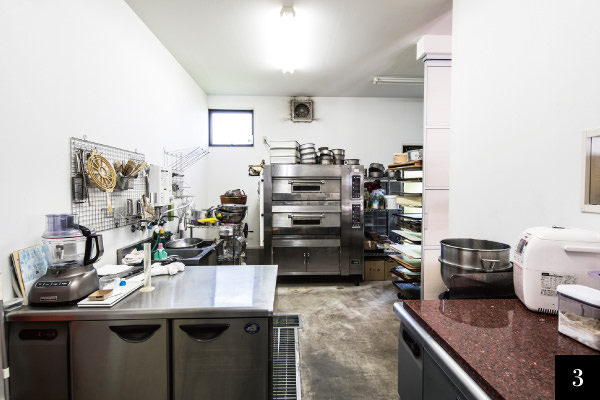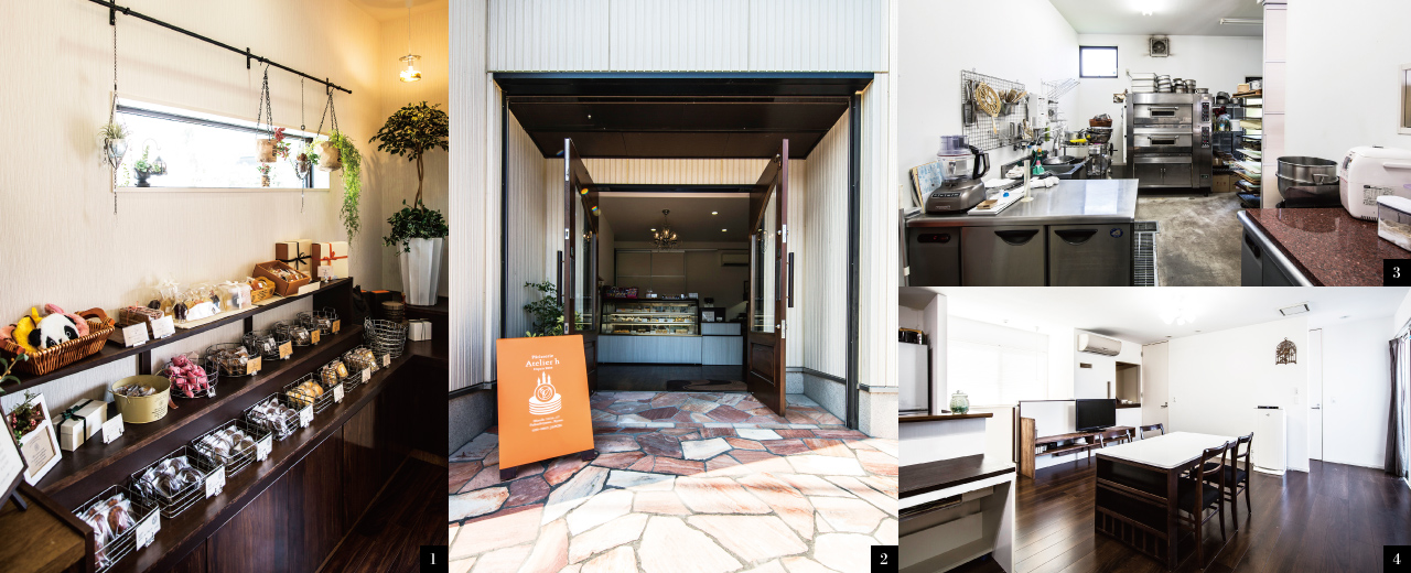 1.焼き菓子を可愛くディスプレイ 2.以前のお店のドアでイメージを継承 3.使いやすい動線を考えた廚房 4.斷熱性が高く、冬の結露も安心