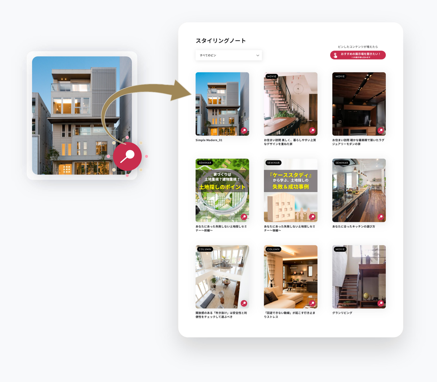 ステップに沿って進(jìn)めながら、気になったコンテンツをピン留めすることで