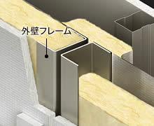 斷熱材で構造體を外側からすっぽり包み込む「外張り斷熱通気外壁」。柱や梁の部分までしっかり斷熱して、外気溫の影響を最小限に抑え、夏も冬も快適な室內の溫度環境を保つことで年間の冷暖房費も大幅削減が期待できます。また、構造體の鉄骨も冷えにくいため表面結露が起きにくく、さらに壁體內の通気性を確保しているため、壁體內結露抑制に効果的です。