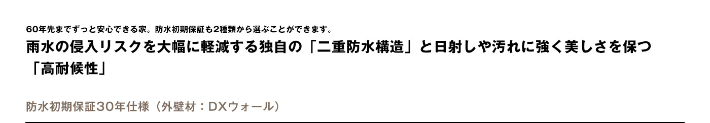 60年先までずっと安心できる家。防水初期保証も2種類から選ぶことができます。