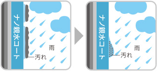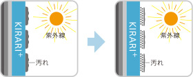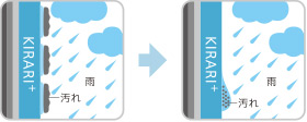 雨水が汚れの下に入り込み、汚れを浮き上がらせて落とします。