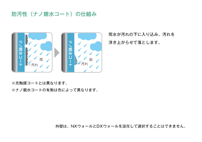 外壁は、NXウォールとDXウォールを混在して選択することはできません。