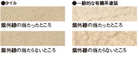 タイルは紫外線に強い「無機質セラミックス」であり、紫外線による色あせはほとんど生じません。