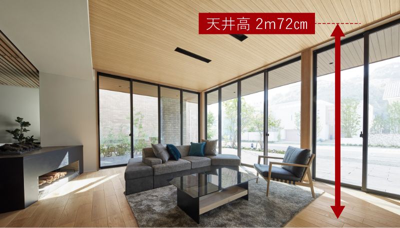 ※ 天井高は2m40cm、2m72cm、さらに3m、3m2㎝、3m8㎝、3m50㎝(1階のみ)の仕様を選ぶことができます。(木造)