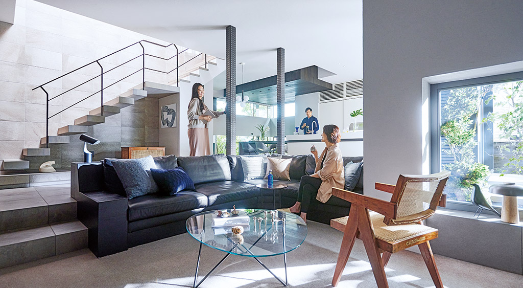 天井高と大開口によって生まれる開放感が、プレミアムな暮らしで住まう人の心を満たす外張り斷熱の鉄骨住宅。