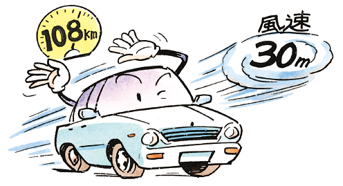 風速はふつう秒速で表されますが、風速30mと言ってもそれがどれくらいの速さなのかピンと來る人は少ないでしょう。風速30mを時速に直すと、なんと108km!つまり、高速道路を走っている車の窓から顔を出した時の、あの風が吹いていることになります。