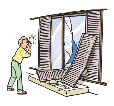 外へ逃げるときは、ガラスや瓦などの落下物に注意し落ち著いて行動しましょう。