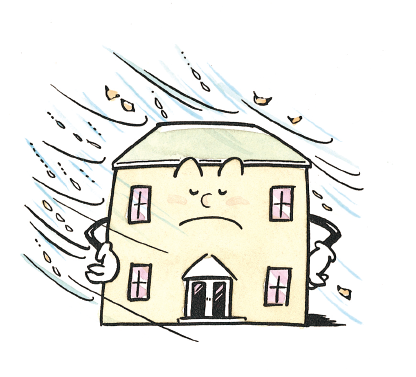 臺風の怖さは、強風により直接建物が被害を受けるよりも、よそから飛んでくる木片や瓦の破片などによって外壁や屋根、窓ガラスが破損することです。庭やベランダなどの屋外は、強風で物が散亂しないよう片付け、植木に支柱をたてておきましょう。バルコニーの排水口はつまりがないか點検を。また、雨戸を閉めてしっかりと施錠、窓にはクレセント錠をかけてください。雨戸がついていない場合はテープや板などで補強し、ガラスが割れたり、その破片が飛び散らないように。