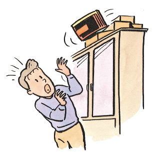振動による落下物は、物自體の損傷はもちろん、下にいる人へも被害を與えます。重い物を不安定においたり、家具の上に物を乗せないように心掛けてください。また、激しい揺れが起こると家具が倒れることもありますので、家具をL字金具で壁面に固定しておくといいでしょう。