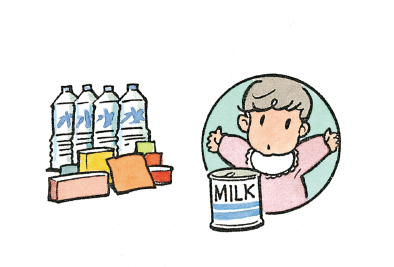 地震に備える非常用食糧及び水は、復舊作業(yè)が遅れた場合も考えて3日分を用意するのが目安です。また、日頃服用している醫(yī)薬品や、乳児がいるご家庭では赤ちゃんのミルクなどもお忘れなく。十分な備えが大切ですが、あまり量が多いと避難の妨げになることもあります。持ち出す荷物は、男性で15キロ以下、女性で10キロ以下におさえましょう。
