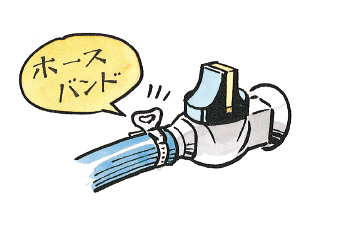 - ■ゴムホースからのガスもれがないよう點検し、ホースバンドでしっかり固定する。