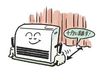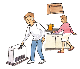- ■石油ストーブの場合、石油をこぼさないように給油。こぼれた油は完全に拭き取る。