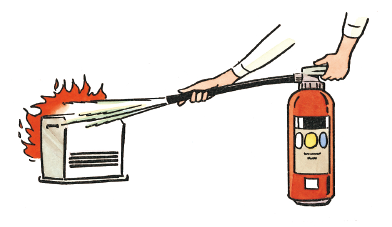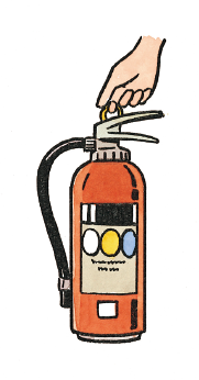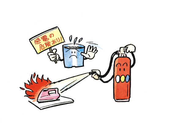 初期消火の決め手になる消火器。火災の種類に応じて3つのタイプがあります。