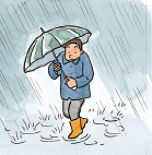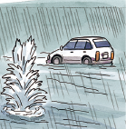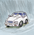 どしゃ降り。傘をさしてもぬれる。車のワイパーを速くしても見づらい。