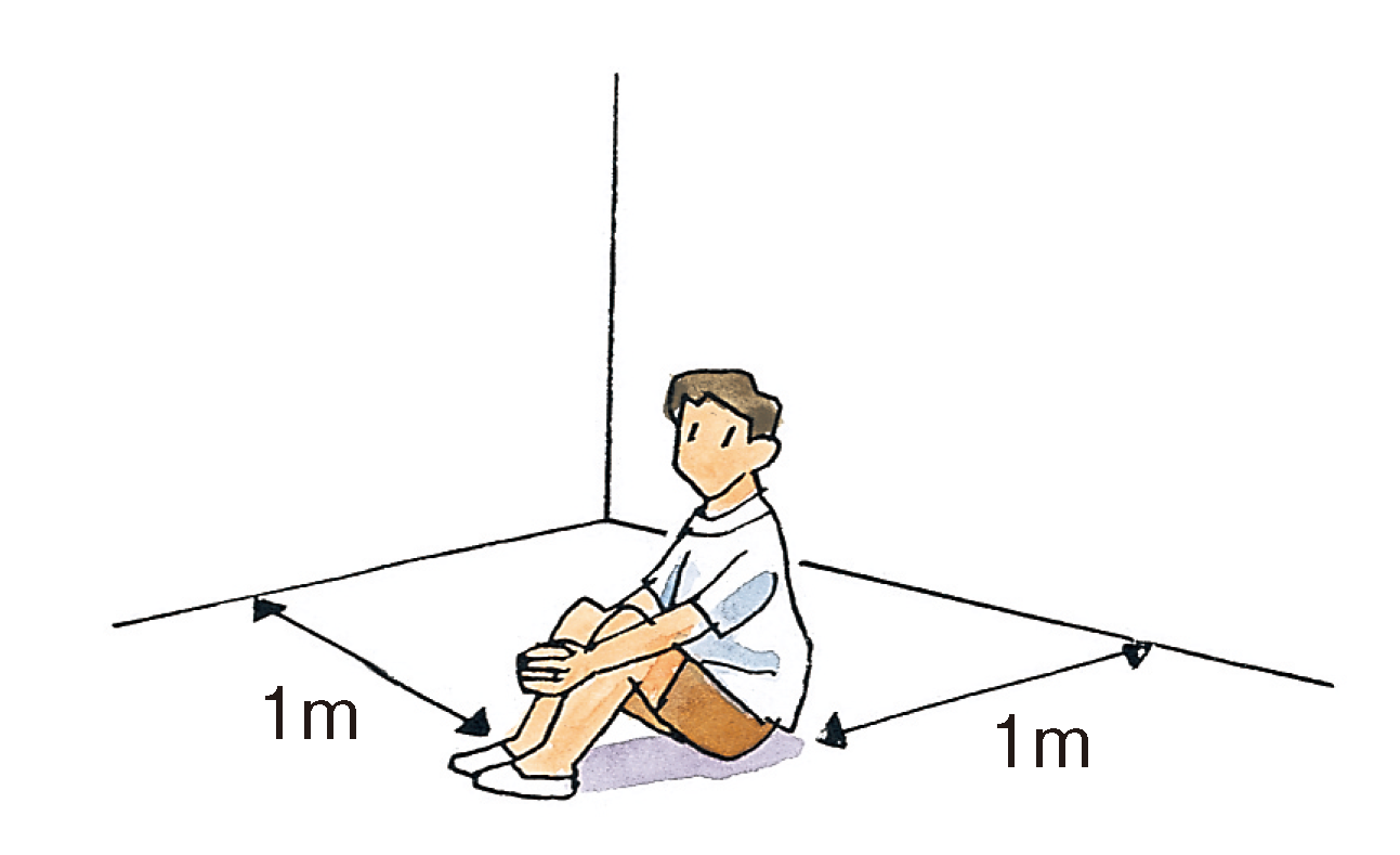 屋內に避難したら、壁や柱などから1m以上離れたところで低い姿勢を保ちます。電話や入浴、炊事は控えましょう。