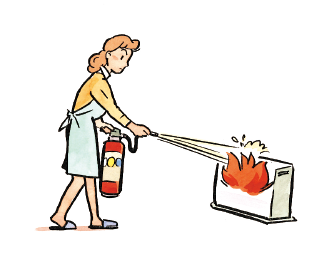 火災発生に驚くあまり、どうしていいやらわからなくなってしまう…。火を出さないようにするのはもちろん、いざ火災が起きた時にどう対処するのか、日頃から、その知識や方法、消火器の準備を行ってください。