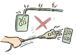 電気器具は、ちょっとした不注意で加熱したり発火する恐れがあります。中途半端なプラグの差し込みもそのひとつ。プラグとコンセントの接続が甘いと、プラグが抜けやすくなり安全な電気の供給もできません。