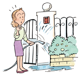 門扉側についているテレビインターホンは、防雨構造になっていますが、水などをまく際、ホース等でうっかり水をかけないように注意してください。