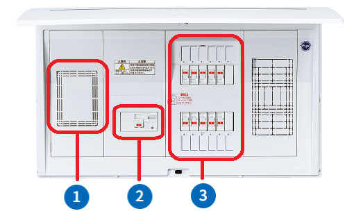 屋內の配線や器具が萬一漏電したときに自動的に電気を切る裝置です。火災や事故を未然に防ぎます。 - 3分岐ブレーカー(配線用遮斷器)