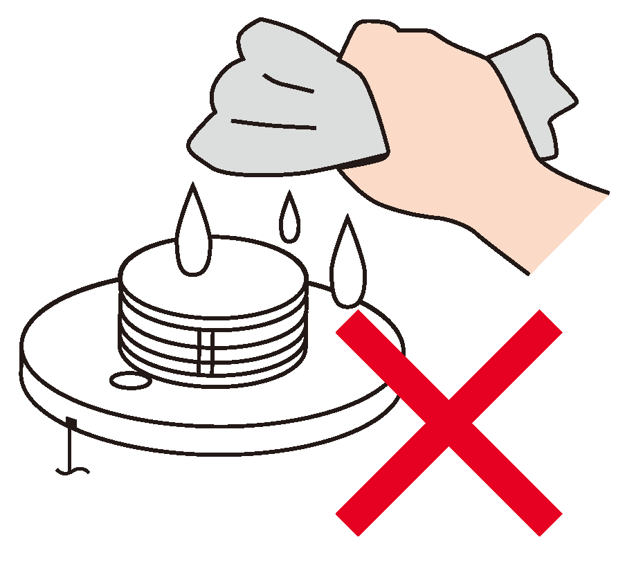 - ■お手入れをする場合、布に水または石けん水をひたし、よく絞ってから汚れをふき取ってください。