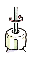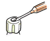 - 5前の1~4の手順でキャップパッキン、座金を外し、スピンドルをプライヤーでゆるめて外します。