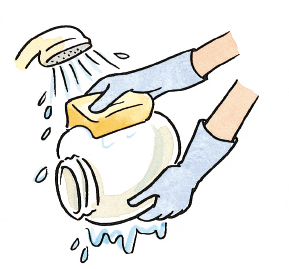 中性洗剤を薄め、スポンジややわらかい布を固く絞ってから、ていねいに汚れを拭き取ります。その後、洗剤が殘らないよう水拭きし、乾拭きするとよりきれいです。
