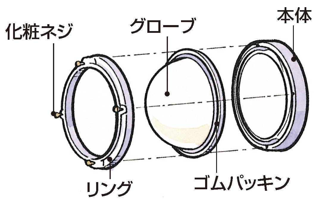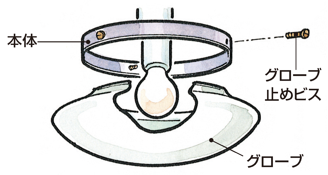 化粧ネジをゆるめてリングを外し、グローブを本體から取り外してください。