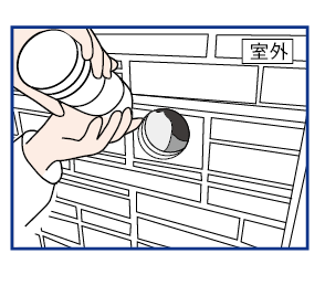 - ■ エアコン用スリーブをあける場合は、ホルソー等を使用し、室內側より穴あけしますが、石膏ボードをくり抜くと防濕シートが表われますので、カッターナイフ等でカットしてから穴あけをしてください。※カットせずにホルソー等で穴あけ作業を行うと、防濕シートが破損する恐れがあります。