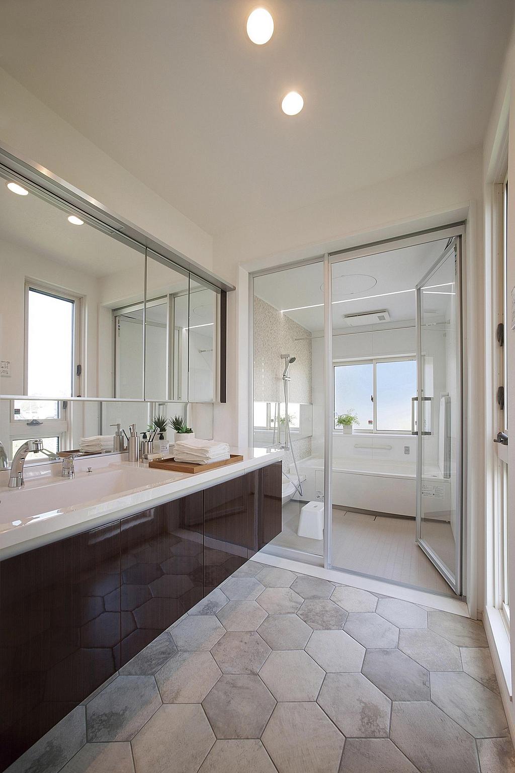 | 見どころ | 高い天井|明るいリビング|リビング大開口|収納提案|家事動線に工夫がある|靜音室(やすらぐ家)|ランドリールーム|外構(庭)に工夫がある|外観タイル貼り|広いバルコニー?デッキ |