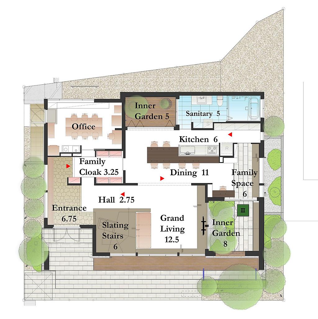 | 見どころ | 明るいリビング|リビング大開口|収納提案|家事動線に工夫がある|外構(庭)に工夫がある|外観タイル貼り|広いバルコニー?デッキ|デザイナーズ |