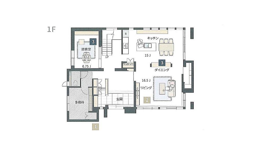 | 見どころ | 明るいリビング|リビング大開口|収納提案|家事動線に工夫がある|防音室(奏でる家)|外観タイル貼り |