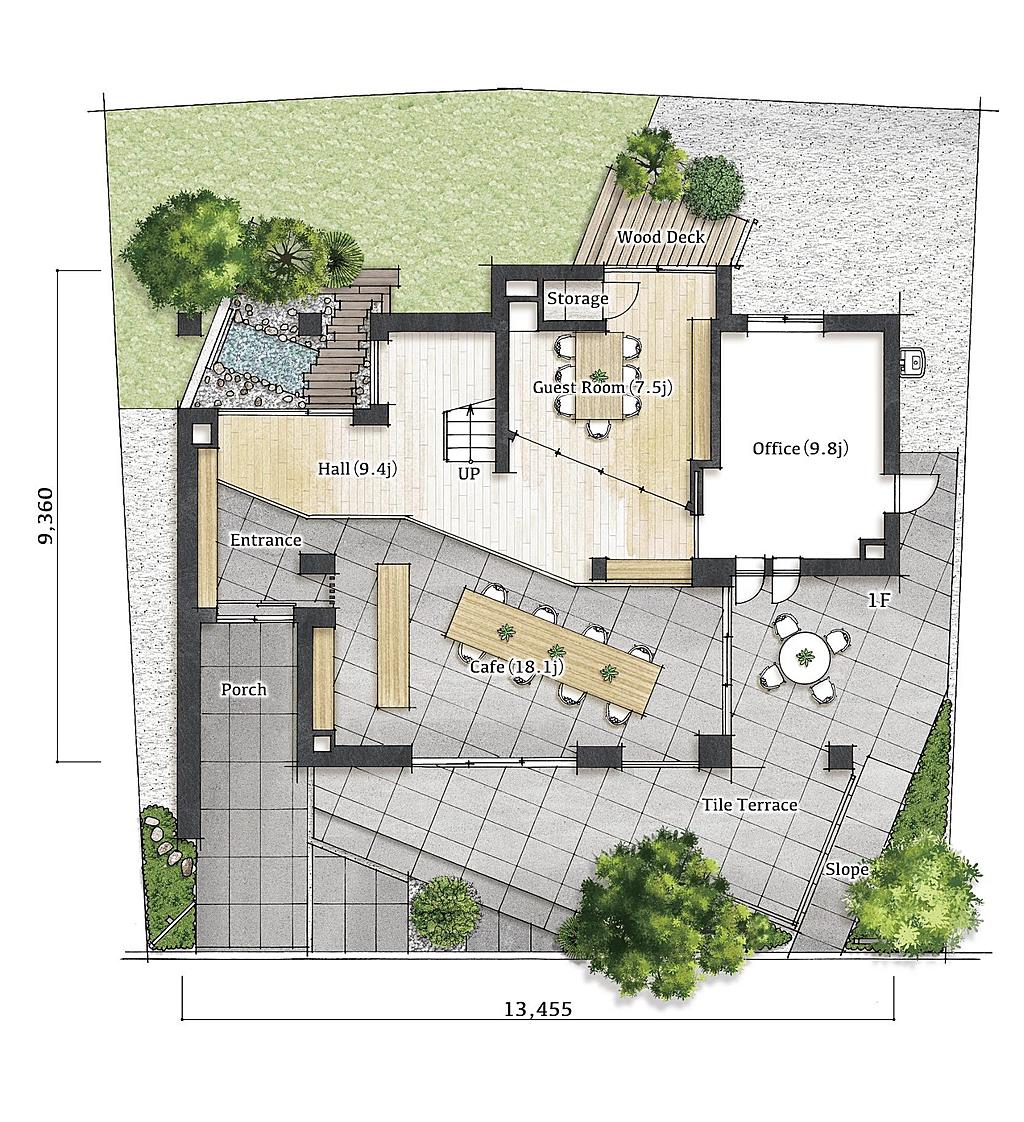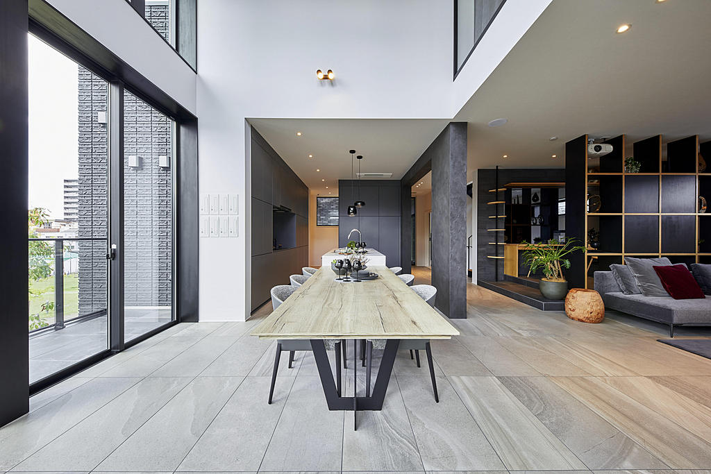 重量住宅3階建て、1階にはオープンカフェスペースを設けており、店舗併用住宅をご體感いただけます。