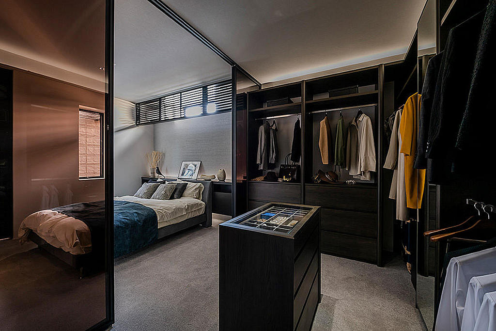 2階ウォークインクローゼットには大切なコレクションをショーケースに飾るように収納することができます。